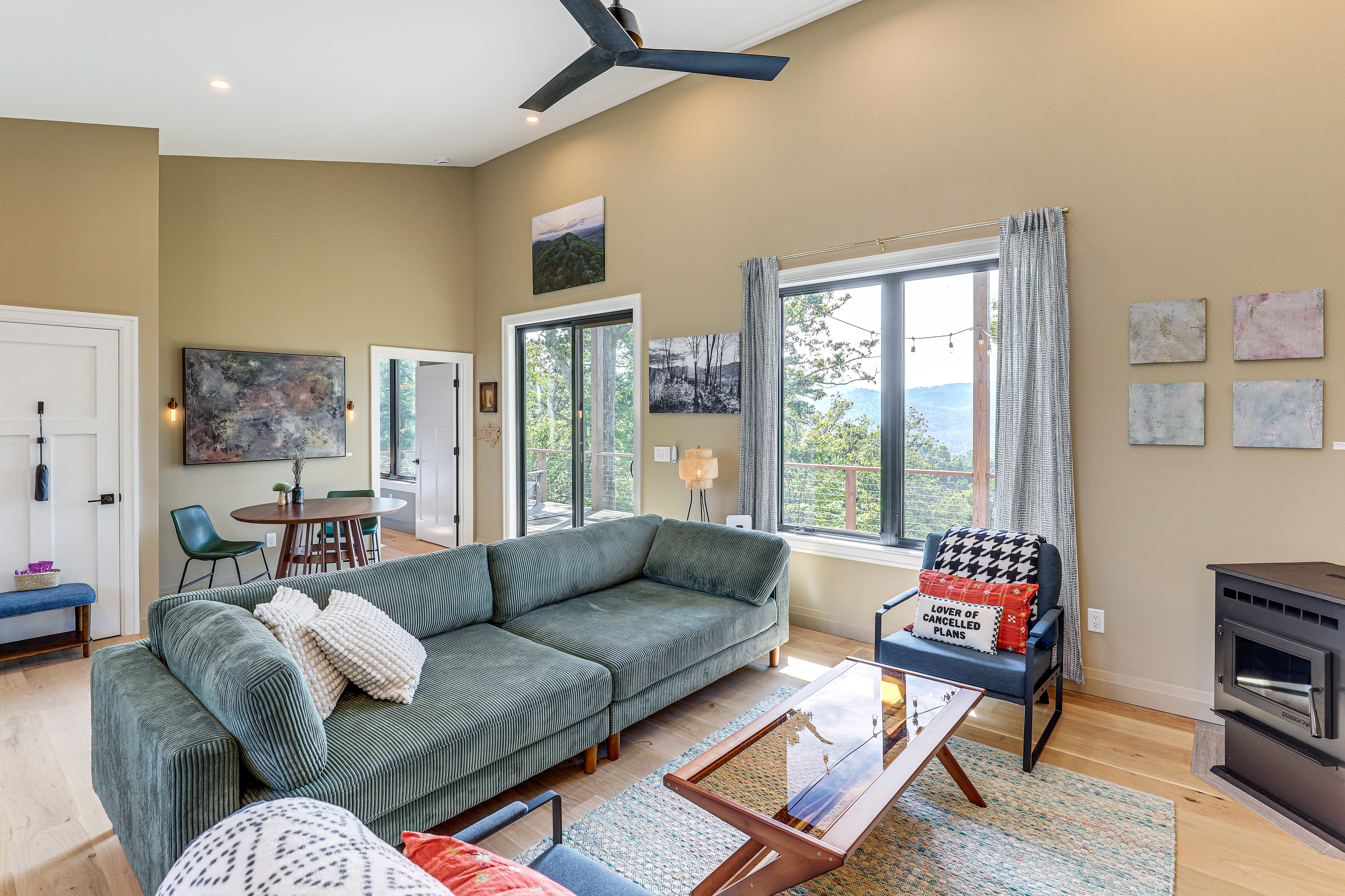 Nestled on the top of the ridgeline in the Blue Ridge Mountains, this private home is perfect for a couples getaway. Enjoy the panoramic mountain views off the rear deck or cozy up to the firepit with 360 degree views. This cottage is 15 minutes from downtown Asheville, 10 minutes to the Blue Ridge Parkway and 8 minutes to Weaverville's cute main street. This certified green built home has everything you need for a relaxing, romantic or adventure filled stay in the gorgeous Smoky Mountains.