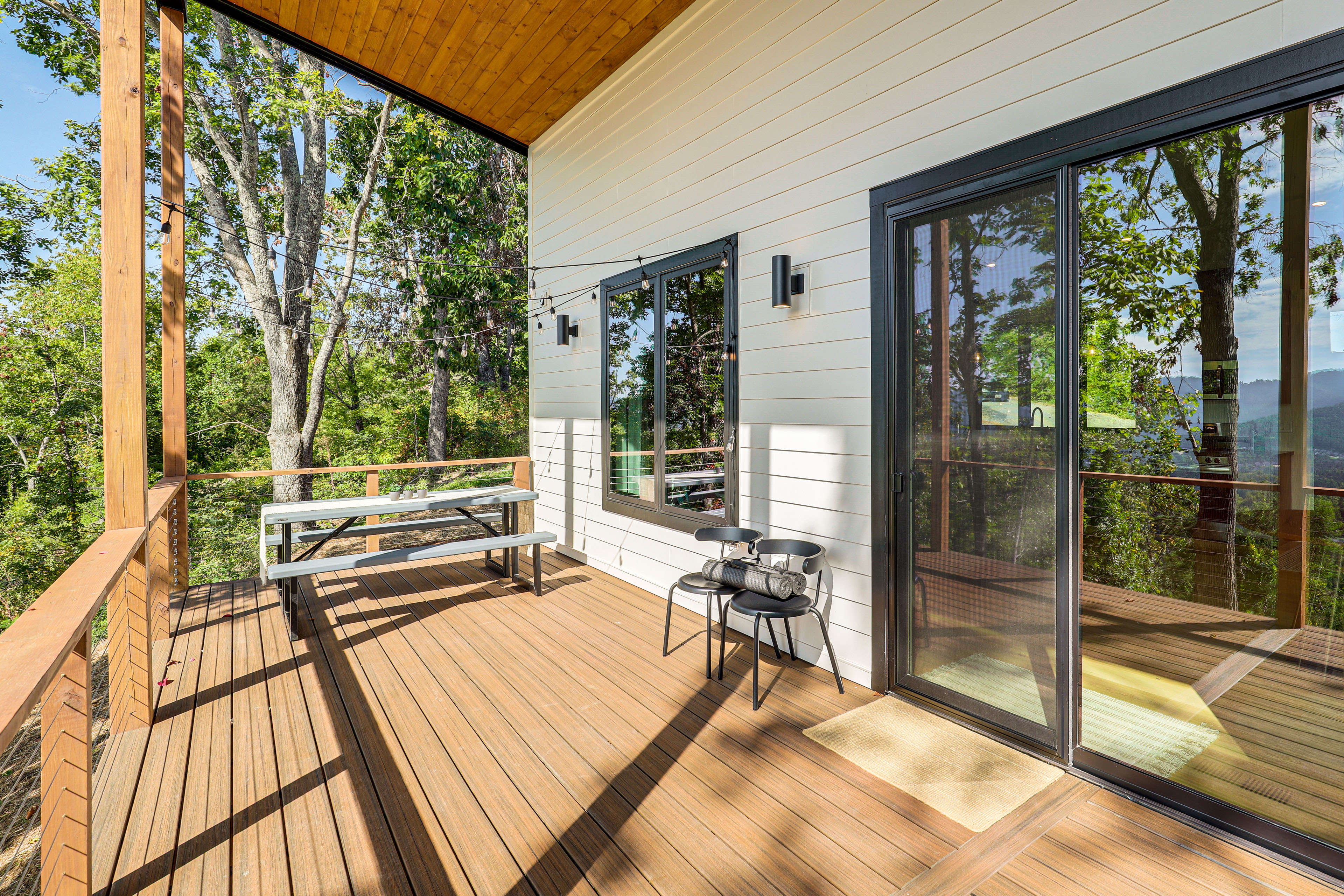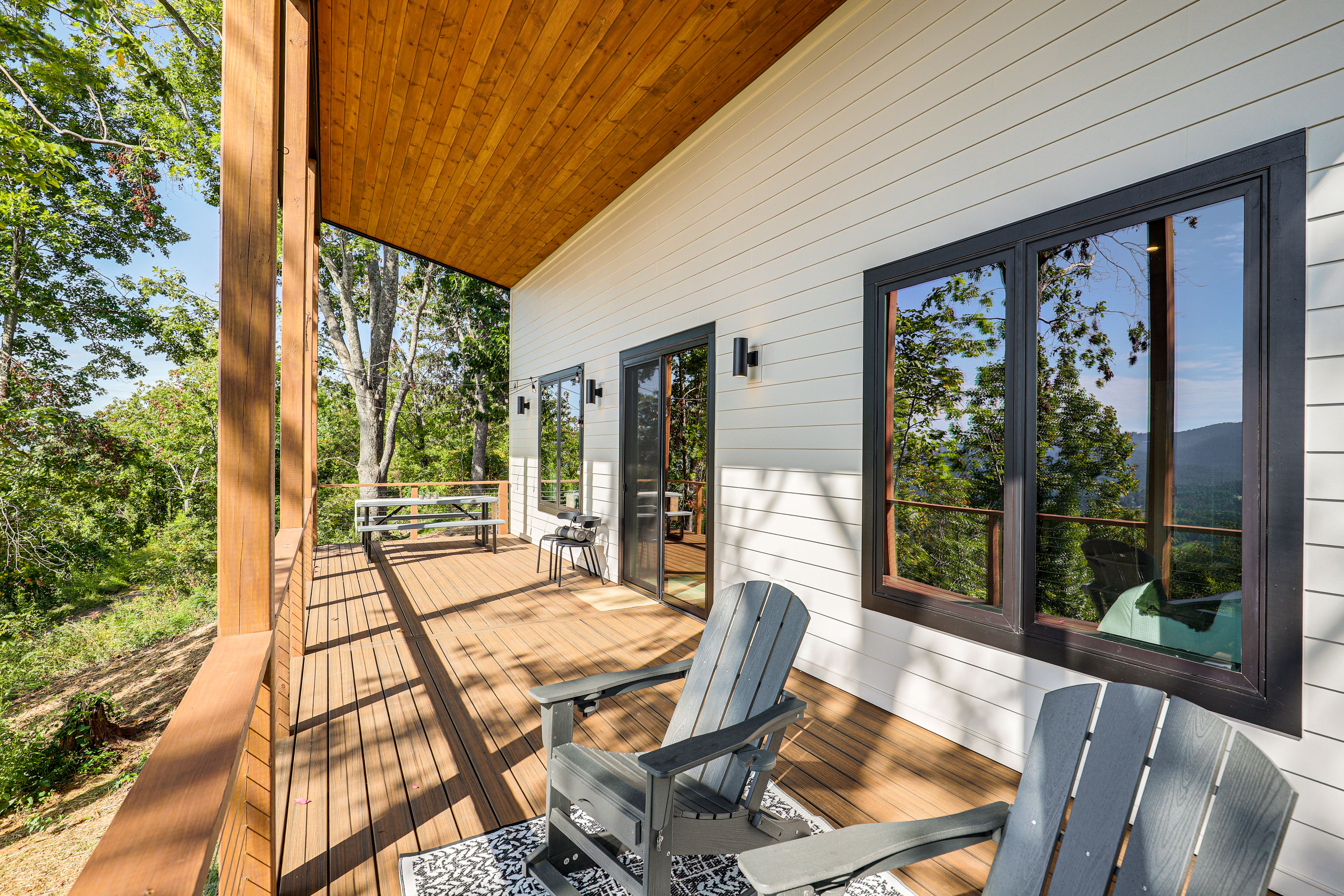 🏡 Your Secluded Sanctuary Step into your own secluded and quiet piece of paradise, where our certified green-built cottage sits majestically atop 15 acres in the beautiful Blue Ridge Mountains. This is a truly magical place where you can wake up above the clouds and dine under the stars! ✨ Enjoy the Outdoors Our huge deck is your outdoor living room, perfect for starting your day with coffee or winding down as the sun sets. It features comfortable rocking Adirondack chairs (with convenient cup/wine holders), a dining table, and plenty of space for a morning yoga session (mats are provided for your stay!). Take your time and simply take in the beautiful views. 🌲 Discover Western North Carolina While your cottage is a quiet retreat, you are minutes away from incredible mountain adventures: • Charming Weaverville: We highly recommend a trip down to this great small town for coffee, groceries, checking out the great local restaurants, and exploring the cute gift and artisan shops. • The Blue Ridge Parkway: You are just minutes from an entrance connecting you to iconic spots like Mt. Mitchell (the highest elevation east of the Mississippi) or the trails of Smoky Mountain National Park. • Adventure Awaits: Spend a day exploring the historic Biltmore Estate, Chimney Rock state park, or discover a hidden hiking trail leading to a gorgeous waterfall—the adventures here are endless. • Reems Creek Golf Course: Just below from the cottage sits the golf course with absolutely amazing Mountain View's from every angle. Public play is available. If golfing isn't your thing stop by the restaurant for a great bite to eat. 🦌 A Note from Nature Our front yard is a natural wildlife crossing! Guests often enjoy seeing our visitors, who can appear anytime but mostly in the evening, walk the trails right from the kitchen window. We've been fortunate to share the property with turkeys, deer, raccoons, bobcats, coyotes, and even black bears. 🗝️ Designed for the View The home was built in August of '25 and features beautiful 360-degree views. To maximize your mountain experience, we intentionally do not have window coverings in the main room of the house (except for light drapes on the living room window).
