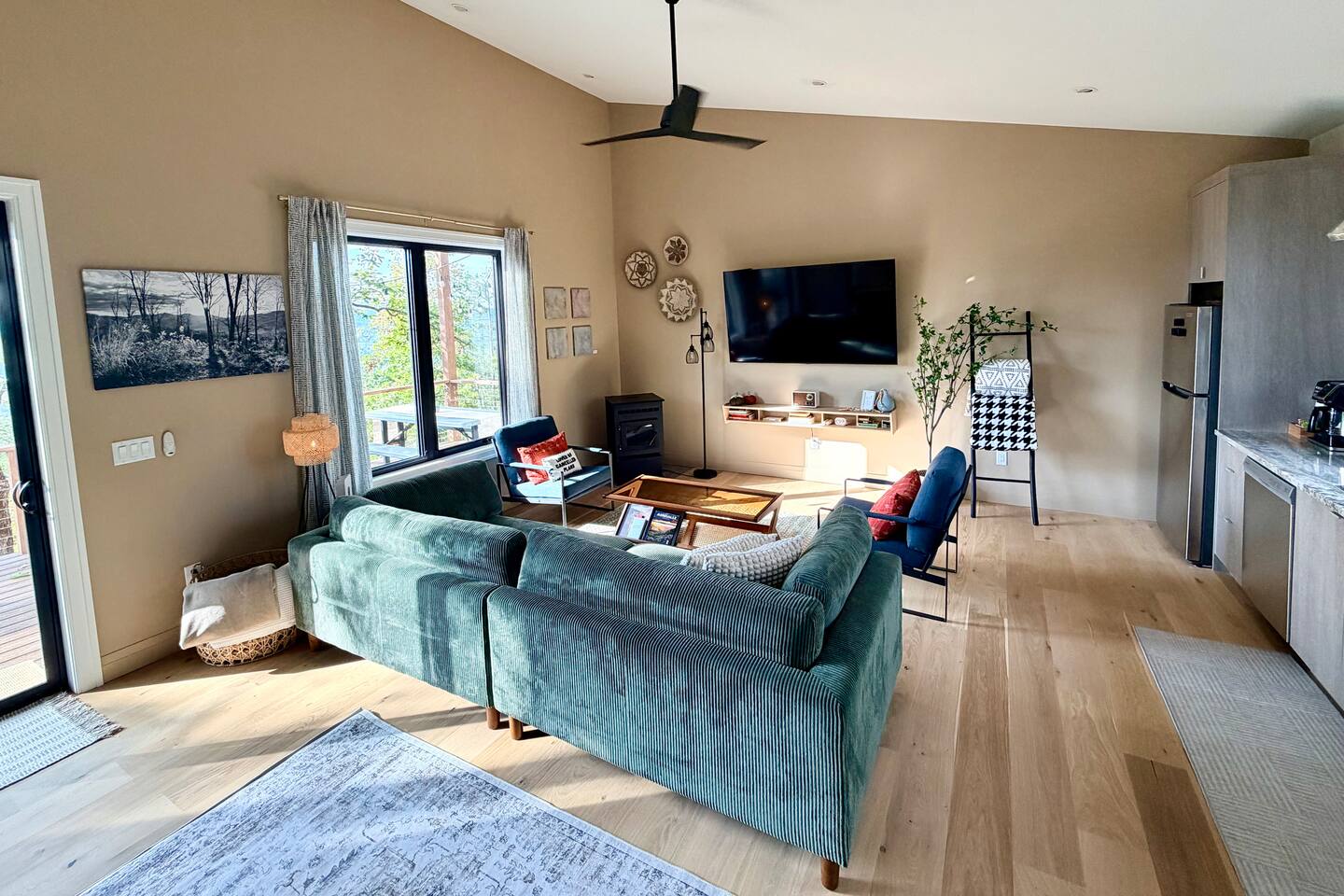 🏡 Your Secluded Sanctuary Step into your own secluded and quiet piece of paradise, where our certified green-built cottage sits majestically atop 15 acres in the beautiful Blue Ridge Mountains. This is a truly magical place where you can wake up above the clouds and dine under the stars! ✨ Enjoy the Outdoors Our huge deck is your outdoor living room, perfect for starting your day with coffee or winding down as the sun sets. It features comfortable rocking Adirondack chairs (with convenient cup/wine holders), a dining table, and plenty of space for a morning yoga session (mats are provided for your stay!). Take your time and simply take in the beautiful views. 🌲 Discover Western North Carolina While your cottage is a quiet retreat, you are minutes away from incredible mountain adventures: • Charming Weaverville: We highly recommend a trip down to this great small town for coffee, groceries, checking out the great local restaurants, and exploring the cute gift and artisan shops. • The Blue Ridge Parkway: You are just minutes from an entrance connecting you to iconic spots like Mt. Mitchell (the highest elevation east of the Mississippi) or the trails of Smoky Mountain National Park. • Adventure Awaits: Spend a day exploring the historic Biltmore Estate, Chimney Rock state park, or discover a hidden hiking trail leading to a gorgeous waterfall—the adventures here are endless. 🦌 A Note from Nature Our front yard is a natural wildlife crossing! Guests often enjoy seeing our visitors, who can appear anytime but mostly in the evening, walk the trails right from the kitchen window. We've been fortunate to share the property with turkeys, deer, raccoons, bobcats, coyotes, and even black bears. 🗝️ Designed for the View The home was built in August of '25 and features beautiful 360-degree views. To maximize your mountain experience, we intentionally do not have window coverings in the main room of the house (except for light drapes on the living room window). Please Note: The property is very private and best suited for two adults only. For safety reasons related to potential fall hazards, we cannot accommodate small children.